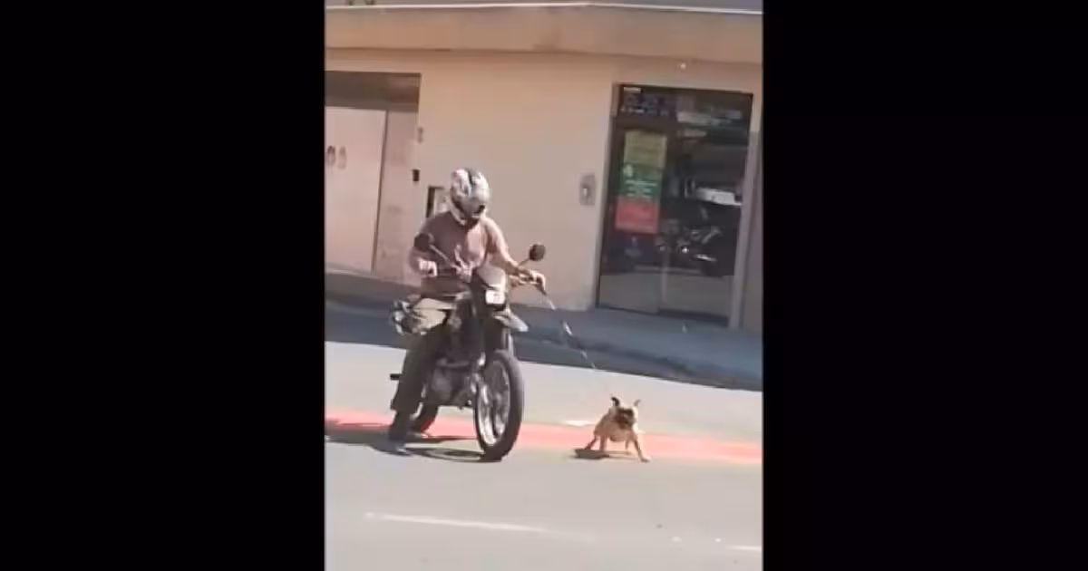 Um homem foi flagrado segurando um cachorro pela coleira enquanto andava de moto na manhã desta sexta-feira, 26, no bairro Garcia, em Blumenau.