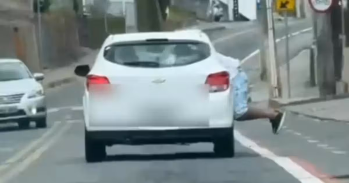 Um homem foi flagrado neste domingo, 7, pendurado na porta de um carro, com as pernas para fora do veículo, na rua Júlio Michel, no bairro Fortaleza, em Blumenau.