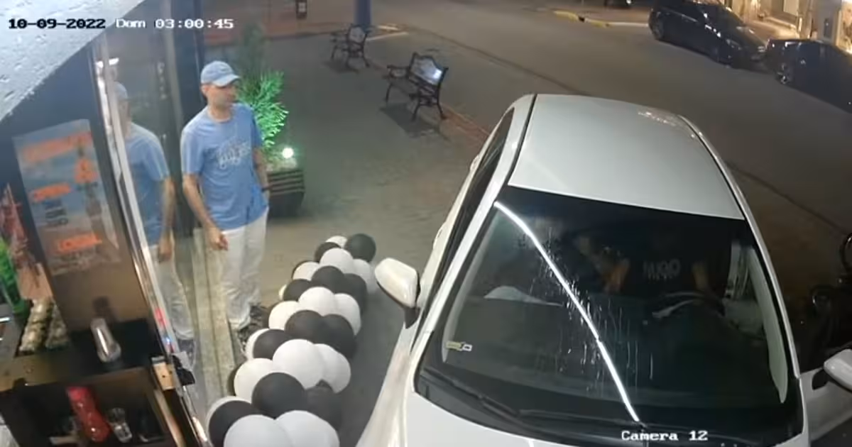 O veículo, um Toyota Corolla com placas de Campo Grande, em Minas Gerais, foi deixado no local pelo condutor, segundo a Polícia Militar. Uma câmera de segurança registrou o momento do acidente.