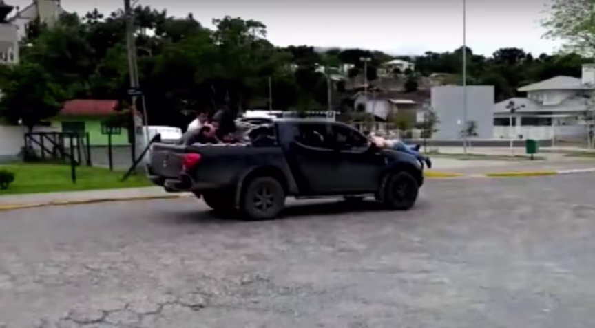 No vídeo, é possível ver o momento exato em que os bandidos, com reféns pendurados no automóvel, disparam. Alguns dos projéteis atingem o chão muito próximo do autor do vídeo, que se espanta.