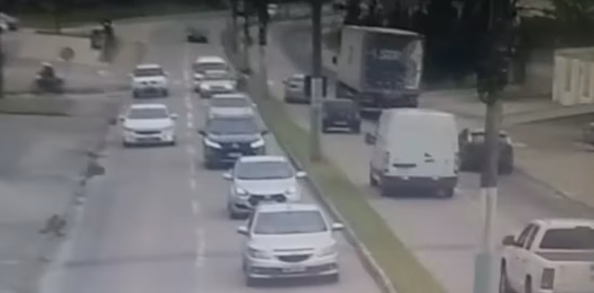Câmeras de monitoramento registraram o exato momento do acidente que gerou a morte de um motociclista na manhã desta sexta-feira, 1, no bairro Jardim Maluche, em frente a Igreja Calvário.