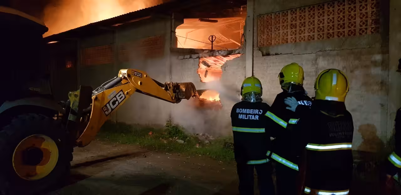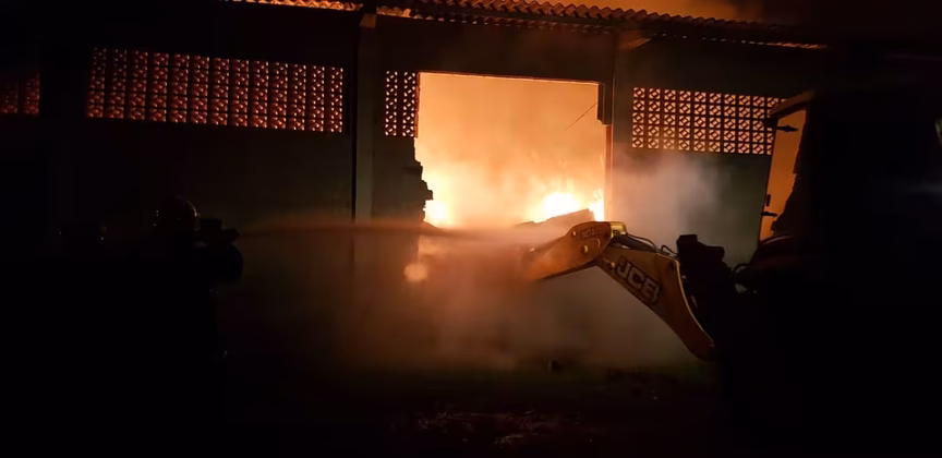 Com o avanço do combate, a equipe utilizou a retroescavadeira para abrir acesso na parede lateral do galpão para progredir na extinção das chamas. Com esta estratégia, e após aproximadamente 6 horas de operação, o incêndio foi controlado. Ao todo, a equipe utilizou aproximadamente 160 mil litros de água para extinguir as chamas.