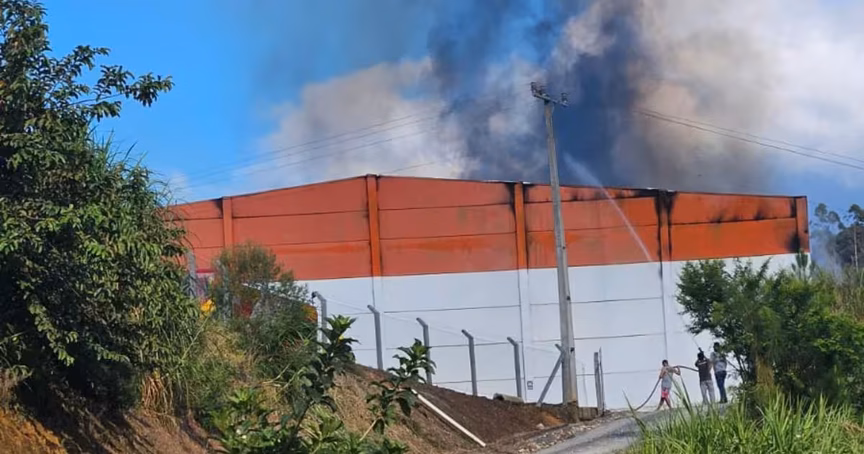 Um incêndio atinge uma indústria de algodão no bairro Águas Negras, em Botuverá, na manhã desta terça-feira, 14.