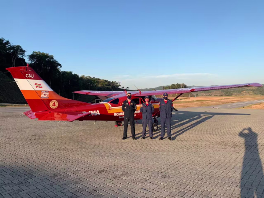 Uma equipe do Batalhão Aéreo, com a aeronave Arcanjo-04 do Corpo de Bombeiros Militar de Santa Catarina, com dois bombeiros de Brusque, realizou alguns voos nesta segunda-feira a tarde para verificar com mais precisão a extensão do incêndio e os danos causados.