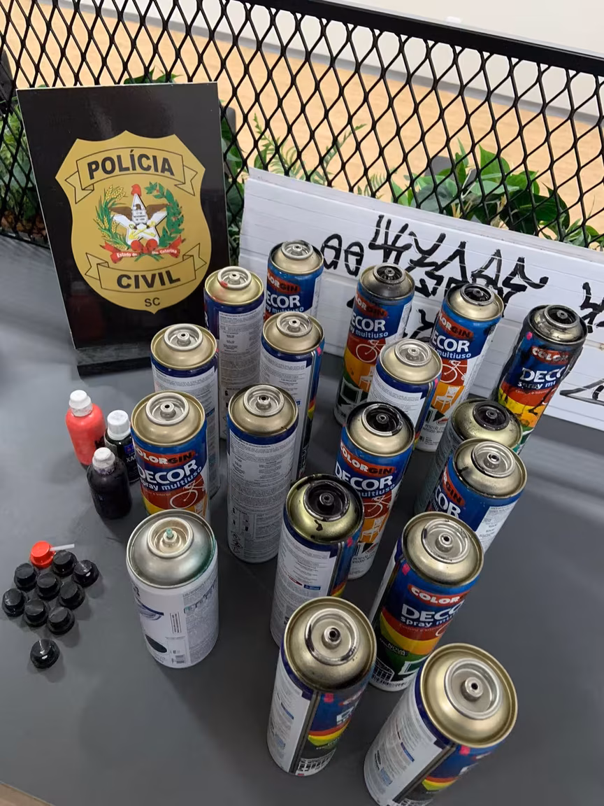 A operação tinha como objetivo apreender materiais relacionados ao crime investigado, como anotações, tintas, sprays, entre outros materiais.