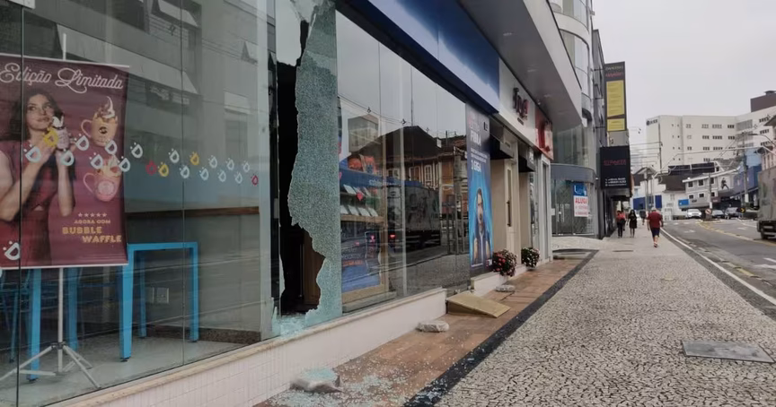 VÍDEO – Loja de operadora de celulares tem vidros quebrados no Centro de Brusque