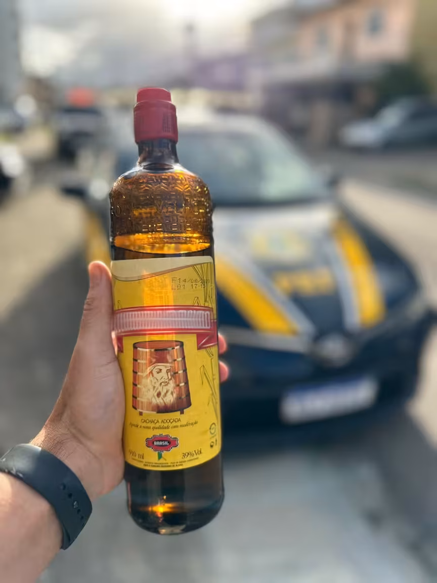 No banco do passageiro, os policiais encontraram uma garrafa de cachaça parcialmente consumida.