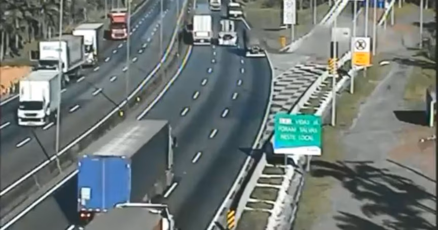 Uma câmera flagrou o momento em que um caminhão entrou na área de escape na BR-376, entre PR e SC, na tarde da terça-feira, 20. O caso aconteceu por volta das 15h40.