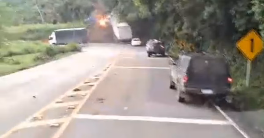 Conforme as imagens registradas pelo motorista, próximo à “curva da morte”, o caminhão ultrapassa uma fila de veículos, segue reto na curva e bate contra um barranco. Por pouco, outro caminhão e um carro que passavam pelo local não foram atingidos pelo veículo.