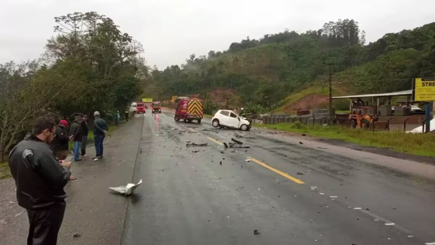 Um motorista morreu após um acidente grave entre um carro e uma carreta na manhã desta quinta-feira, 10, no quilômetro 82 da BR-470, em Rodeio. A rodovia está interditada.