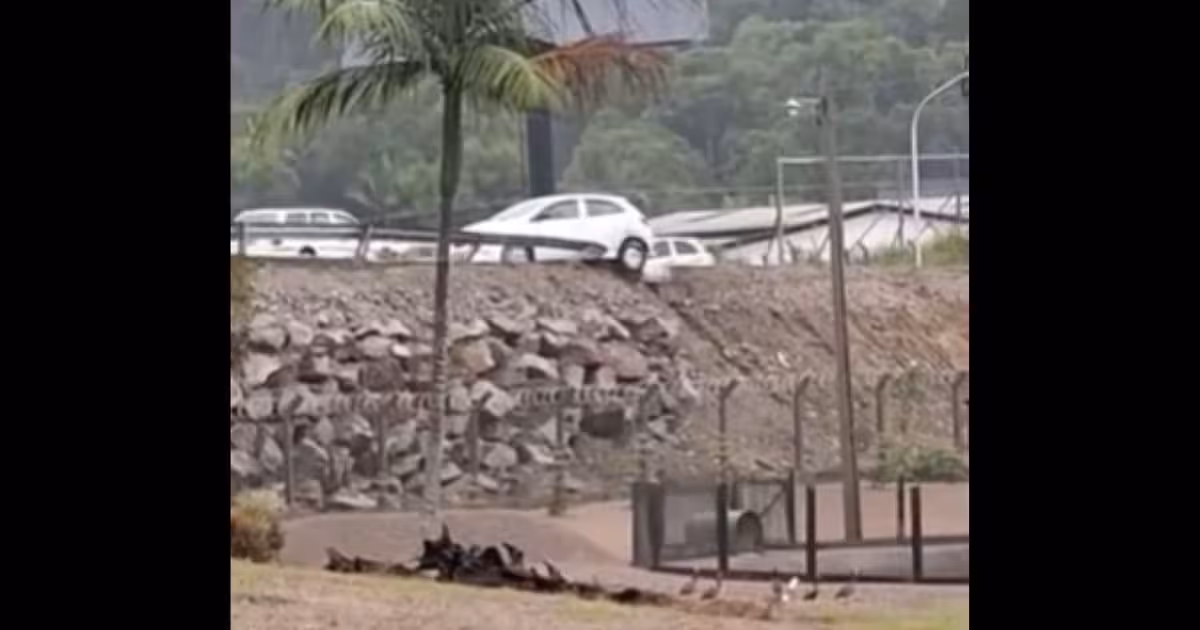 Um vídeo foi enviado por um leitor ao jornal O Município por volta das 7h desta segunda-feira, 15. Pelas imagens, é possível ver que o carro está parado na contramão e que parte da traseira dele está fora da pista.