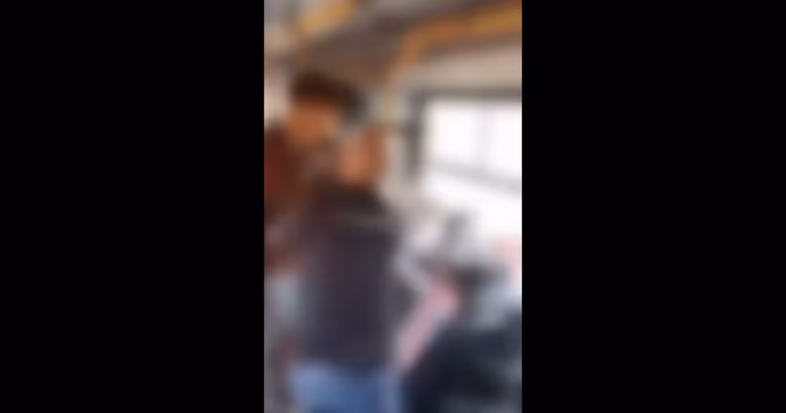 Pelas imagens, é possível ver que o homem está em pé no meio do veículo de frente a um estudante. Em determinado momento, o motorista segura no braço do aluno, ele se desprende e o homem o empurra para trás.