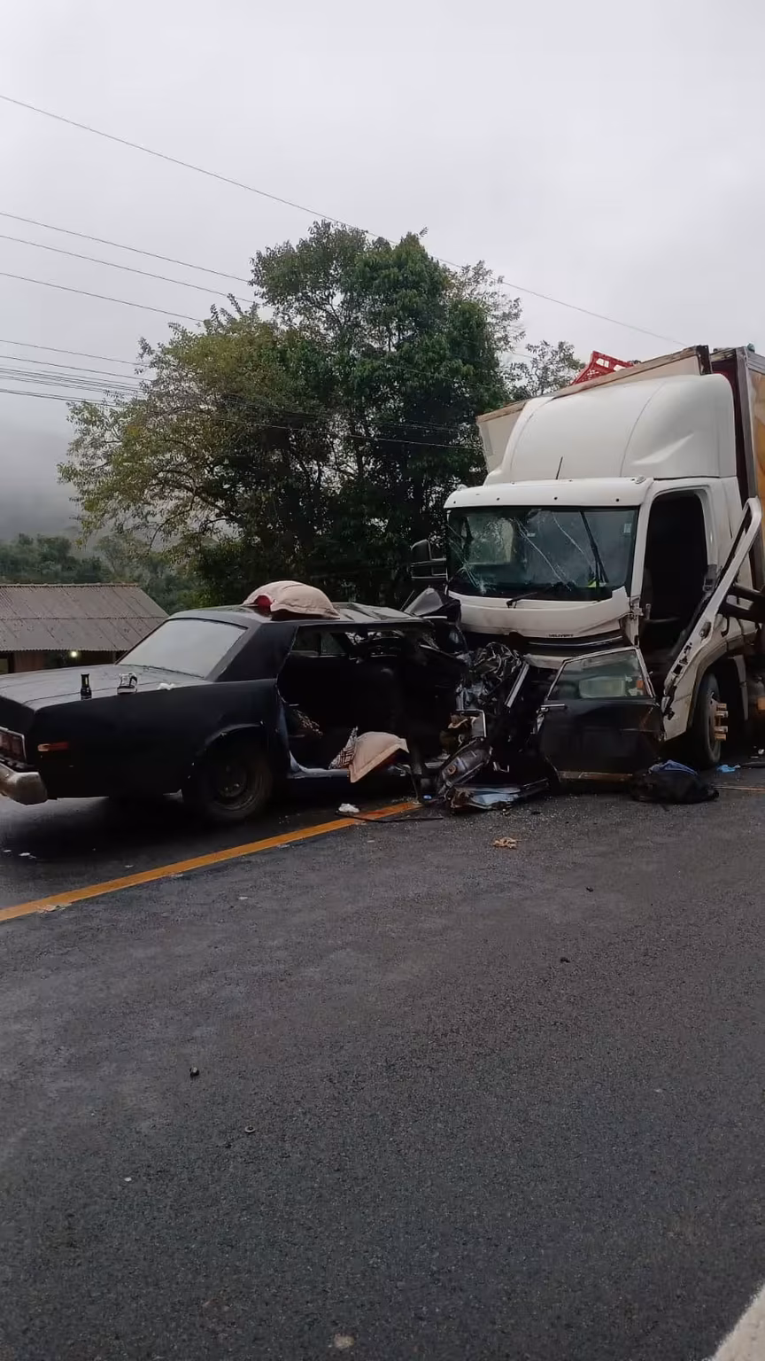 A batida envolveu um Ford Galaxie LTD com placas de Blumenau e um caminhão. No carro estavam seis ocupantes, entre eles três adultos e três crianças. Segundo a Polícia Rodoviária Federal (PRF), as vítimas fatais foram uma mulher de 61 anos e duas crianças, ainda não identificadas. Todas morreram no local, presas às ferragens.