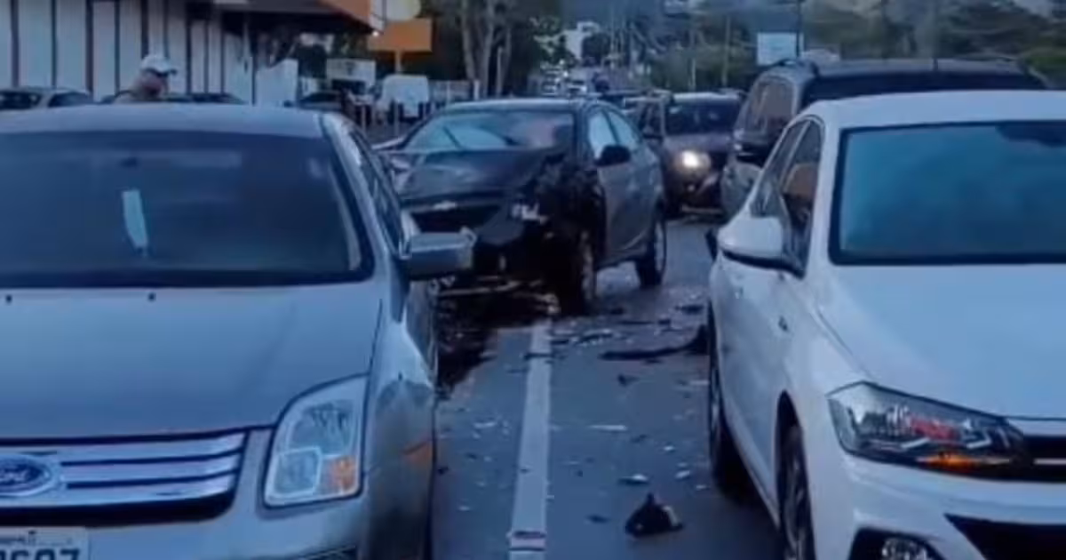 VÍDEO – Mulher fica ferida após grave acidente entre cinco veículos em Florianópolis