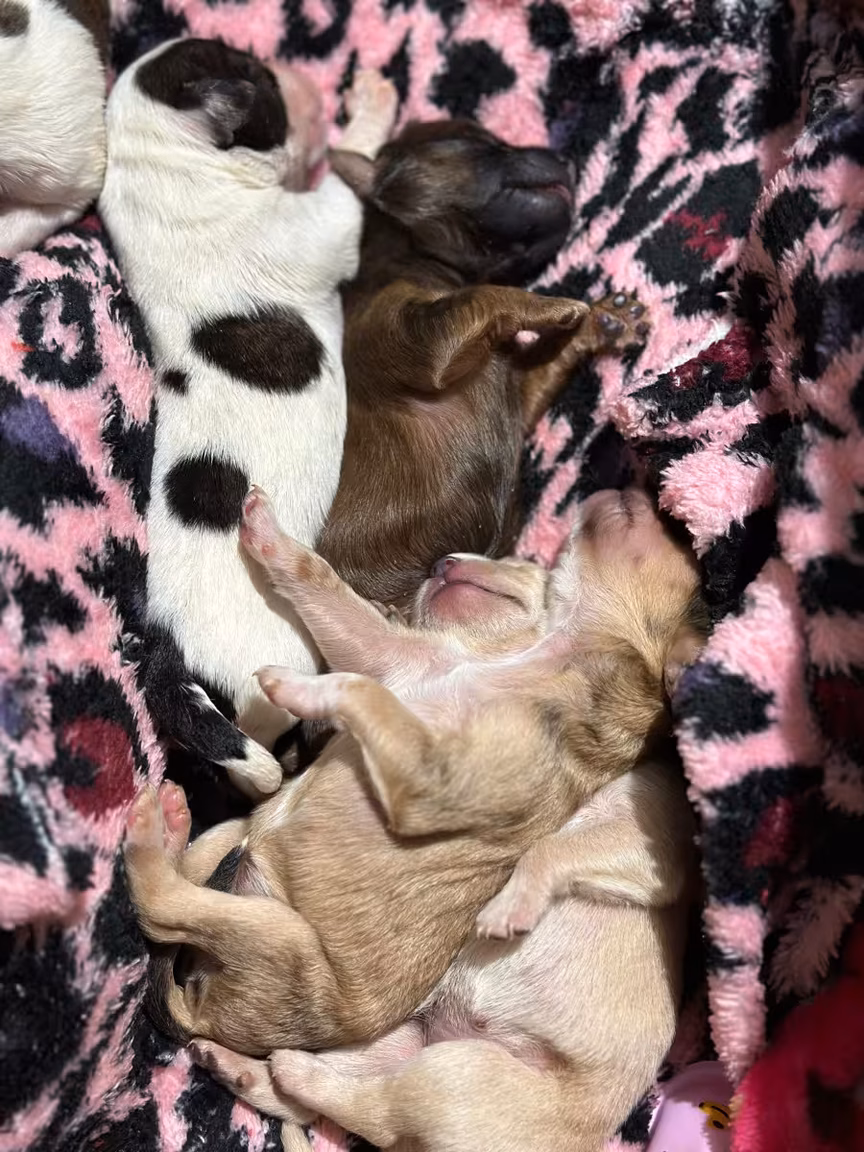 Os filhotes estão sendo cuidados por uma voluntária da causa animal, que também resgatou uma cadela para amamentá-los.