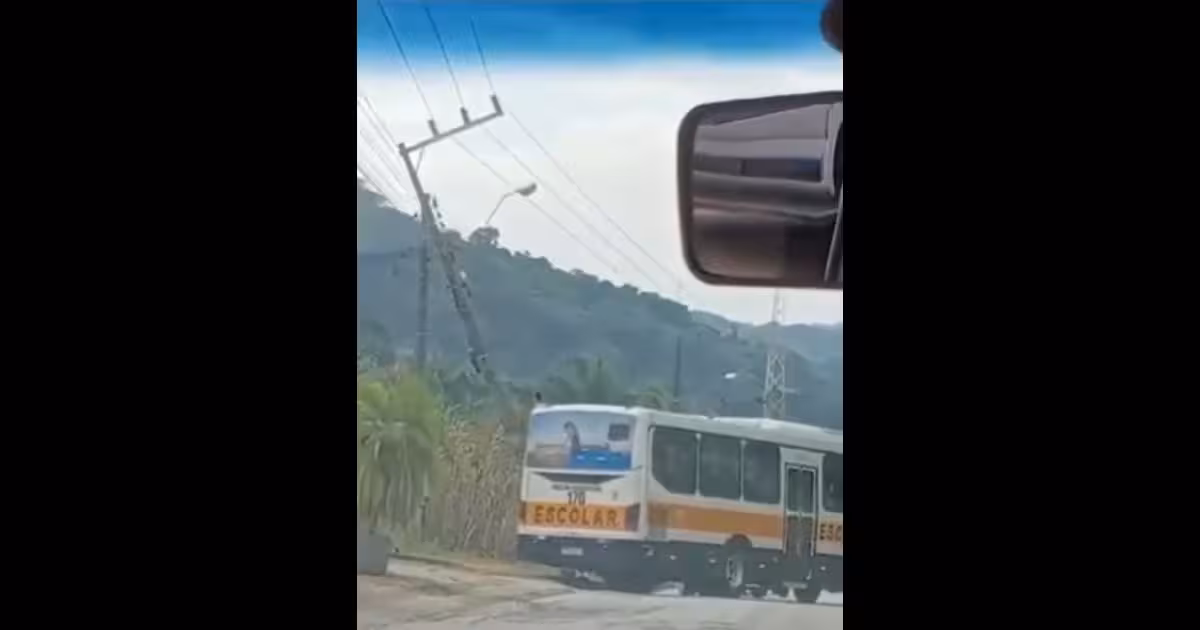 VÍDEO – Ônibus escolar atinge poste no Cedrinho, em Brusque