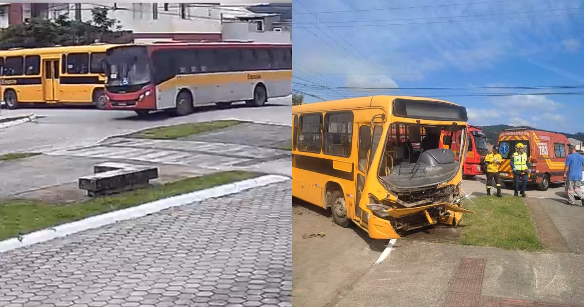 VÍDEO – Ônibus escolares colidem e deixam pelo menos quatro pessoas feridas em Itajaí