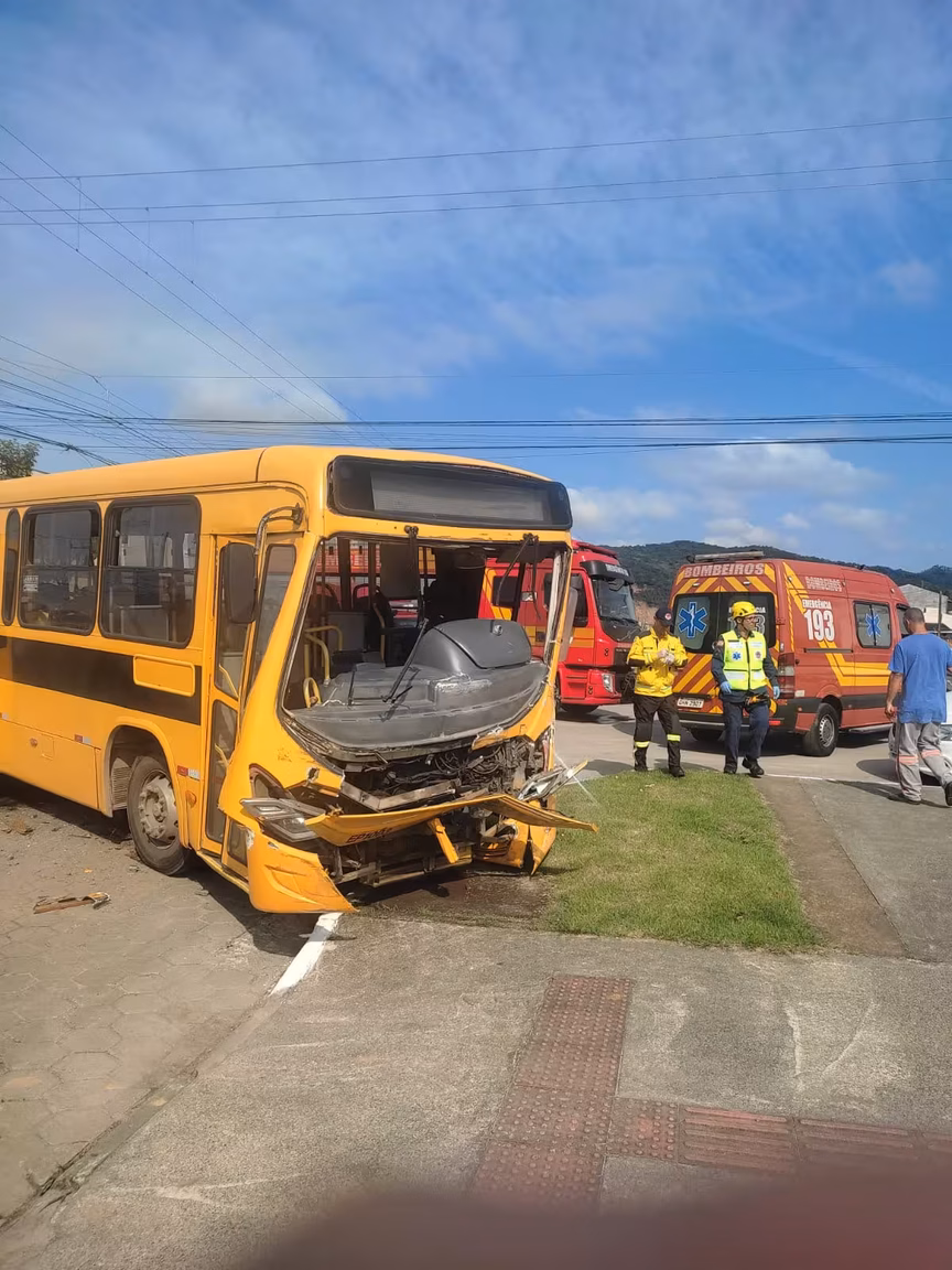 Dois ônibus escolares colidiram em um cruzamento de ruas no bairro Santa Regina, em Itajaí, no início da tarde desta quarta-feira, 22. O motorista de um dos veículos foi encontrado desacordado. Das crianças que estavam embarcadas, pelo menos duas ficaram feridas. Uma mulher ficou em estado grave. Imagem gravada por uma câmera mostra uma pessoa sendo arremessada de um dos veículos.