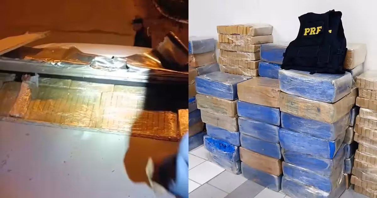 Durante fiscalização a um caminhão Mercedes Benz, de Belo Horizonte (MG), os policiais notaram que o compartimento de carga, que estava vazio, tinha forte odor de maconha. Além disso, o comprimento interno do baú era menor em comparação ao comprimento externo, indício de um fundo falso.