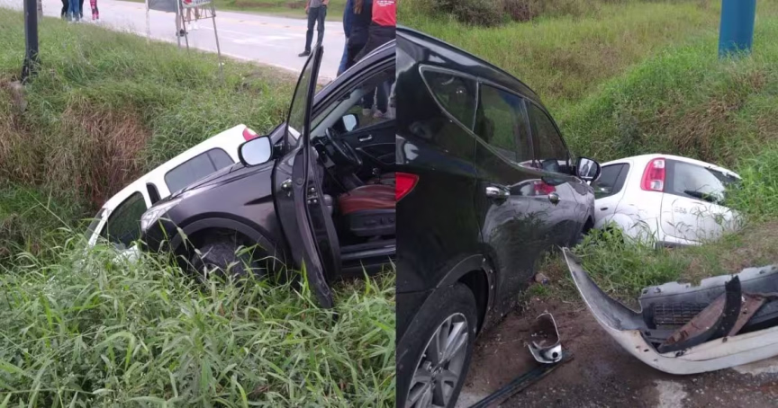 Ele colidiu na traseira de um Punto de Gaspar, com um motorista de 28 anos; com um Santa Fé de Balneário Camboriú, que estava com uma condutora de 19 anos; e um Uno Vivace de Gaspar, conduzido por uma mulher de 49.