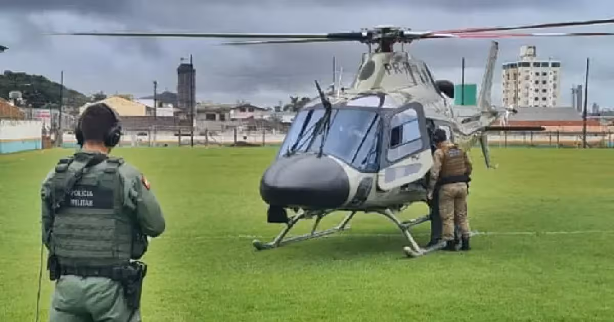 A aeronave da Polícia Militar de Santa Catarina Águia 02 estava realizando patrulhamento em Camboriú para levantar pontos de alagamento, extensão dos danos e prevenção de furtos em locais onde as viaturas da PM não conseguiam chegar.