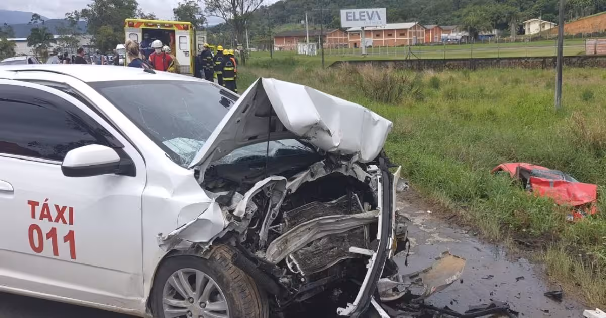 De acordo com o Corpo de Bombeiros, o acidente envolveu um táxi, modelo Chevrolet Cobalt branco e um Volkswagen Gol vermelho.