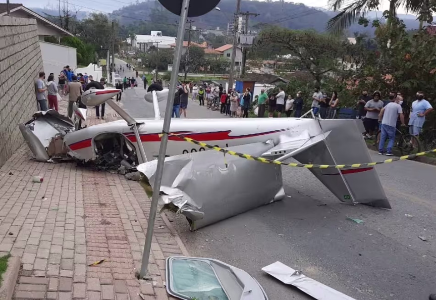 Alexandro Cunhago, de 33 anos, e Fábio Juliano Reis, de 35, receberam alta do Hospital Azambuja neste domingo, 26. Eles foram as vítimas da queda da aeronave Kolbflier na rua José Júlio Schumacher, em Guabiruba, neste sábado, 25.
