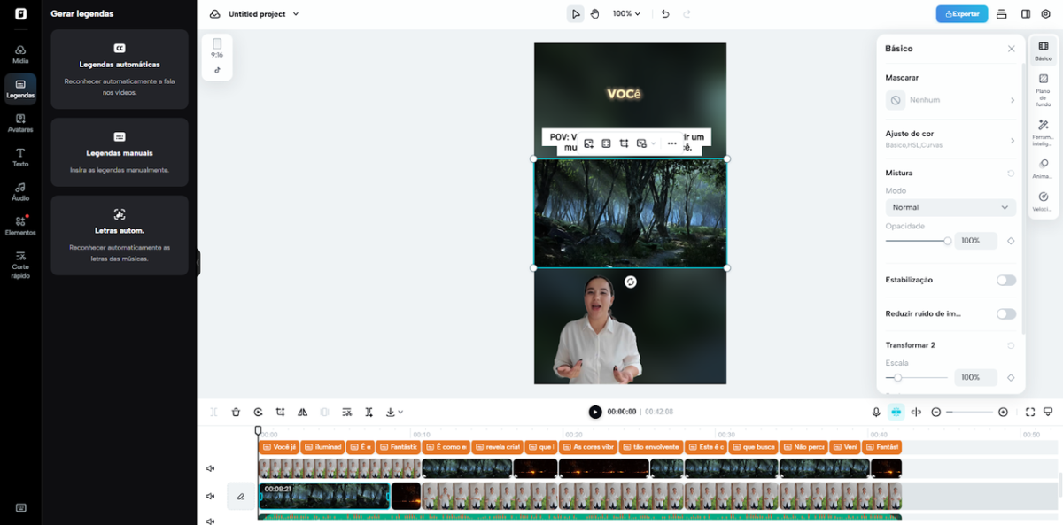 Passos para sincronizar legendas em dois idiomas grátis e criar vídeos com IA agora