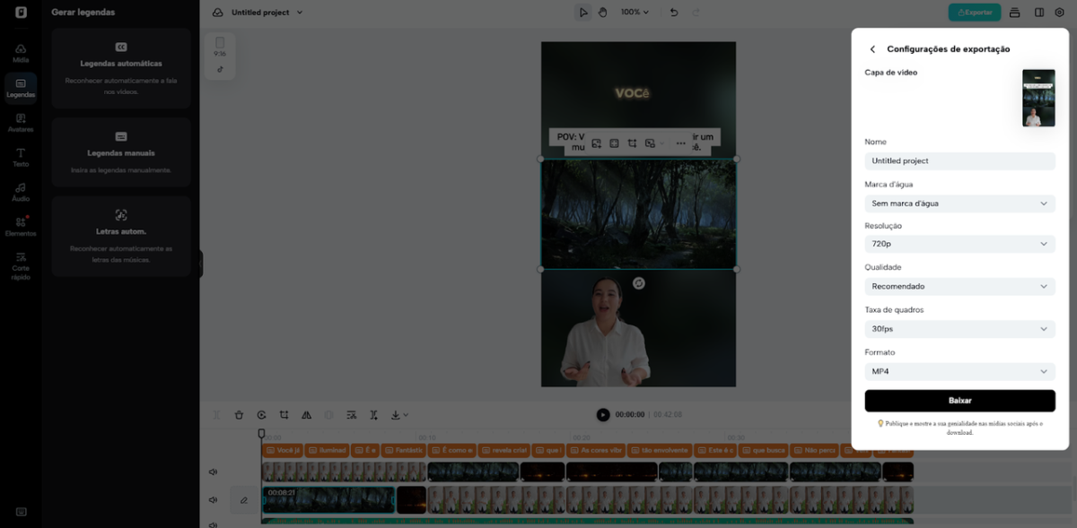 Passo 3: Edite, exporte e compartilhe com legendas sincronizadas