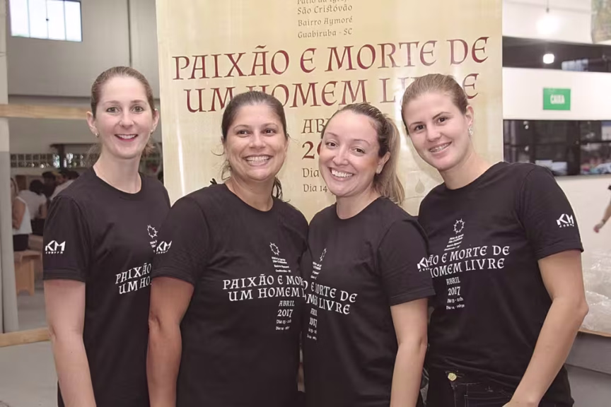 Transformar os três atores que interpretam Jesus em um único personagem, e fazê-los parecerem iguais, é um dos trabalhos da equipe da Maquiagem Artística. Composta por três integrantes, o grupo também é responsável pelos efeitos que simulam os machucados e ferimentos, e dão maior veracidade às cenas, em especial nas do julgamento e flagelação. “Com certeza o mesmo frio na barriga que dá em quem está atuando também é o nosso, nos bastidores”, comenta Eliane Woitexen uma das coordenadoras. Quem divide com Eliane a responsabilidade dessa importante equipe é Vanessa D. Carminatti.