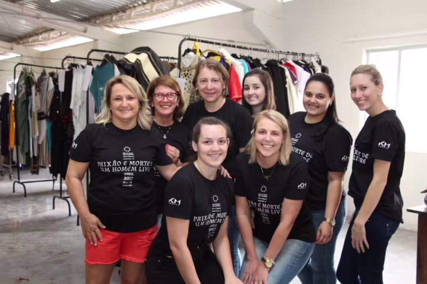 A Equipe de Figurino é coordenada por Camila Schlindwein, que conta com o apoio de Solange Nascimento e mais seis integrantes. Os trabalhos já começaram no ano passado, e envolveu muita pesquisa e planejamento para dar conta do figurino de tantos atores. “Precisamos da ajuda de muita gente para customizar as peças, costurar a mão mesmo, pois muitas roupas foram reformadas, outras foram feitas totalmente novas. É recorte, é colagem, montagem, costura, são muitos processos até tudo ficar pronto”, revela.