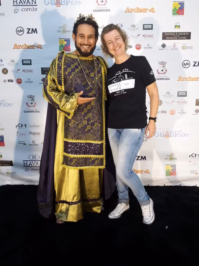 “Conforme passa cada ensaio a gente sabe o tempo que a gente tem para desenvolver cada maquiagem e para tentar fazer todos os Jesus na hora certa”, explica a coordenadora Vanessa Dietrich Carminati.
