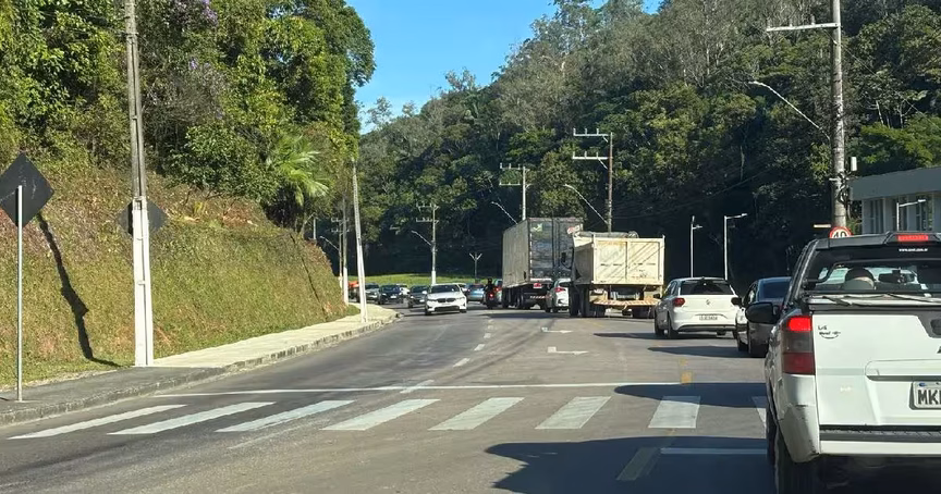 Motoristas de Brusque enfrentam congestionamentos incomuns na manhã desta segunda-feira, 10, principalmente em direção à área central da cidade.
