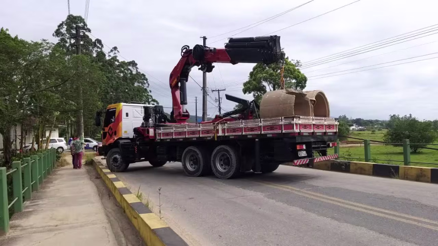 Na manhã desta quinta-feira, 9, a ponte Alois Petermann, localizada no bairro Rio Branco, em Brusque, teve a passagem restringida com tubos de concreto, após um laudo indicando que a estrutura está comprometida.