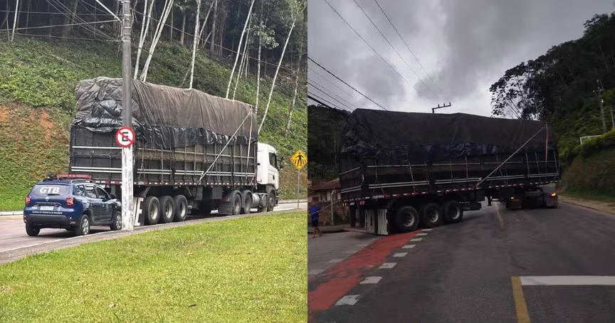 Após abordagem, o caminhão foi acompanhado pela GTB até a rua Poço Fundo, onde foi estacionado para que fosse feita a transferência de carga excedente para outro veículo.
