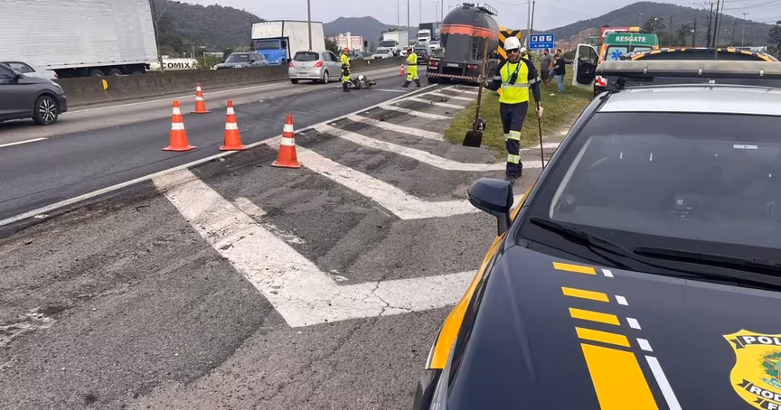 Motociclista morre após ser atingida por caminhão-tanque na BR-101, próximo ao acesso a Brusque 03/10/2023 • Redação O Município
