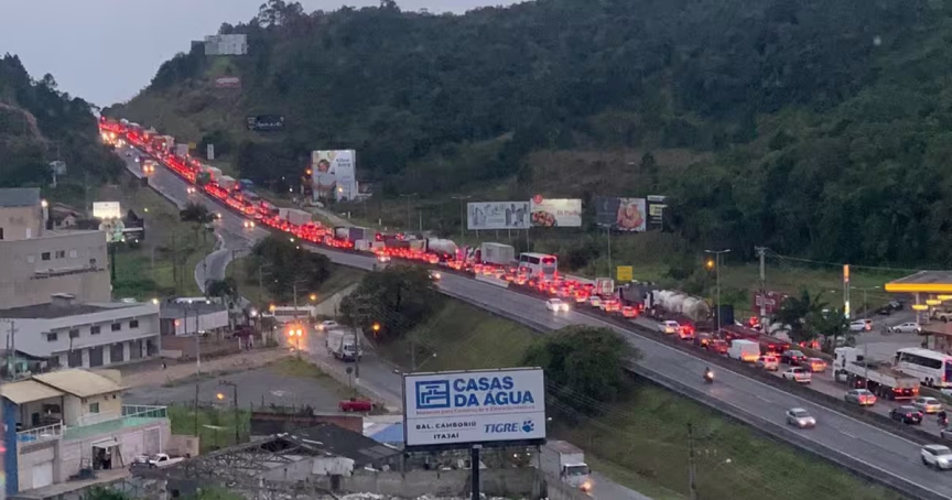 VÍDEO – Carreta colide com barreira e gera fila quilométrica na BR-101, em Itajaí 18/10/2022 • Beatriz Coan