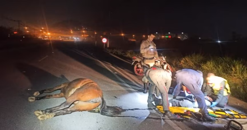 Motociclista é hospitalizado após se envolver em acidente com cavalo na rodovia Antônio Heil, em Itajaí 29/06/2022 • Redação O Município