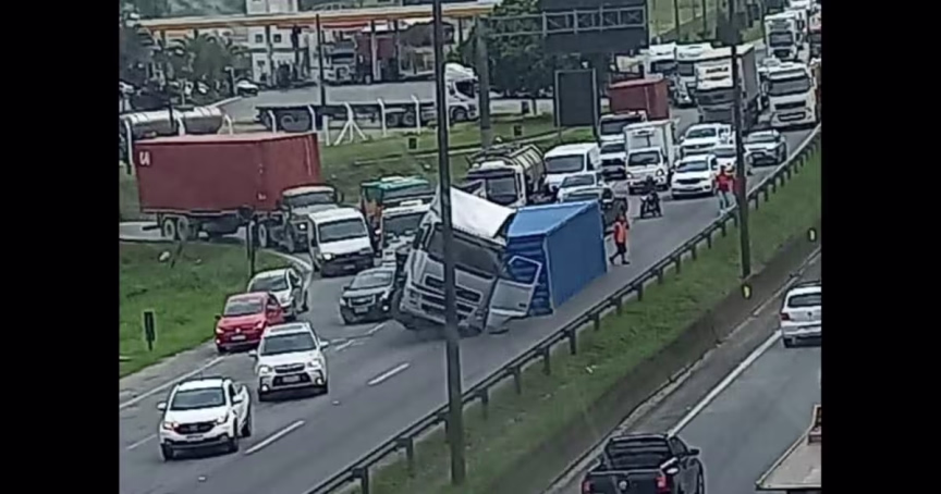 Carreta tomba e acidente causa 21 quilômetros de congestionamento na BR-101 21/12/2021 • Redação O Município