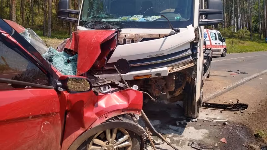Acidente entre carro e caminhão mata quatro pessoas na BR-153 no Meio-Oeste de SC 22/09/2021 • Redação O Município