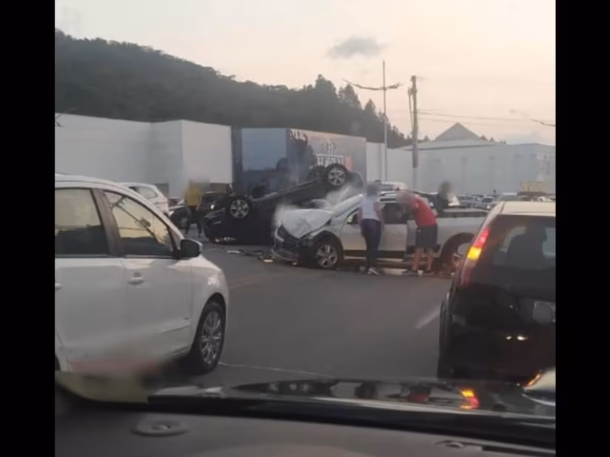 VÍDEO: carro capota após colisão na rodovia Antônio Heil, em Brusque 21/10/2020 • Redação O Município