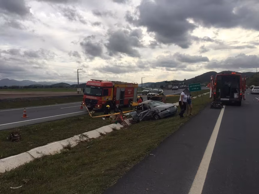 Após colisão, veículo capota e duas pessoas ficam feridas na BR-470, em Gaspar 18/10/2020 • Redação O Município