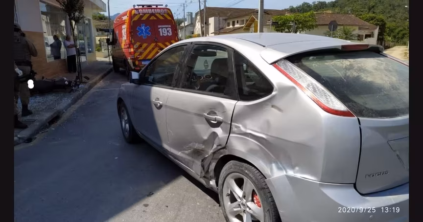 Colisão entre carro e moto deixa um homem ferido no Águas Claras, em Brusque 24/09/2020 • Redação O Município