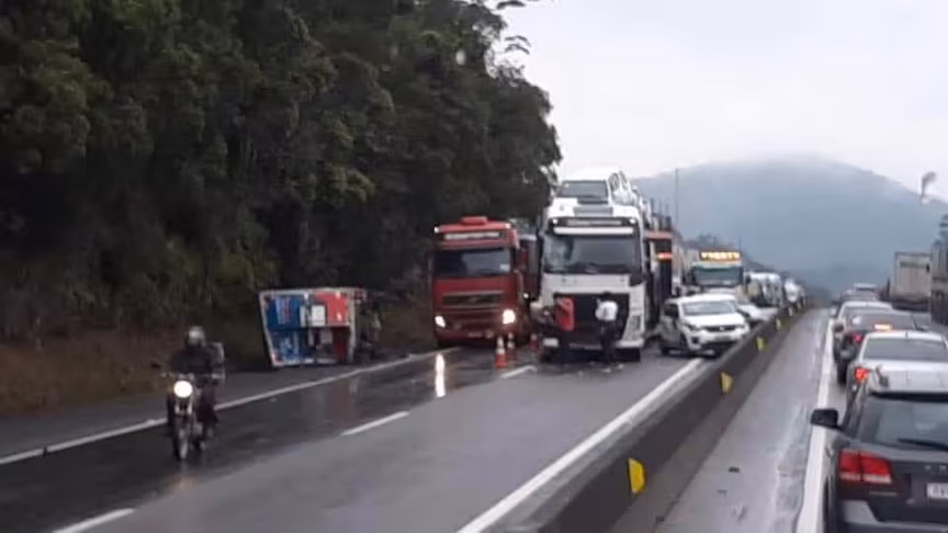 Engavetamento envolvendo 10 veículos causa lentidão na BR-101, em Itajaí 19/08/2020 • Redação O Município