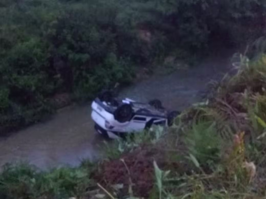 Carro sai da pista, capota e cai dentro de córrego, no bairro Limeira 10/06/2020 • Redação O Município