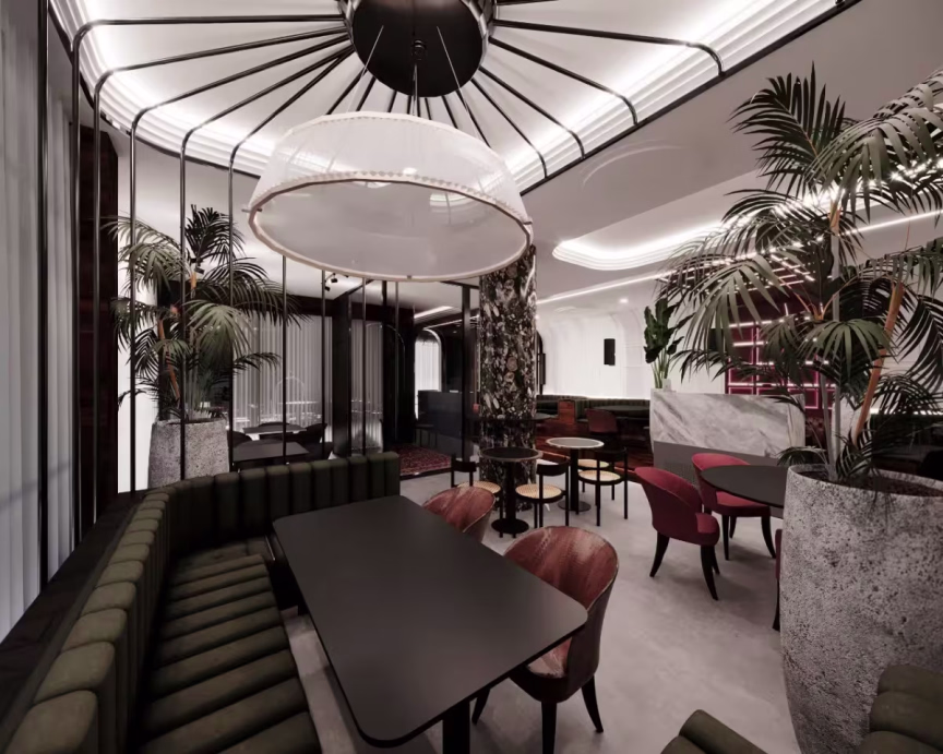 O empreendimento terá três espaços: O restaurante, o bar e a casa noturna, com possibilidade de adaptação para eventos privados. Cada setor foi estudado individualmente por meio de um projeto funcional e harmônico. As influências de restaurantes consagrados pelo mundo deram o tom do projeto. Ornamentações extravagantes do estilo clássico, cores fortes de Bauhaus, geometria e simetria do cubismo formam a concepção do espaço.