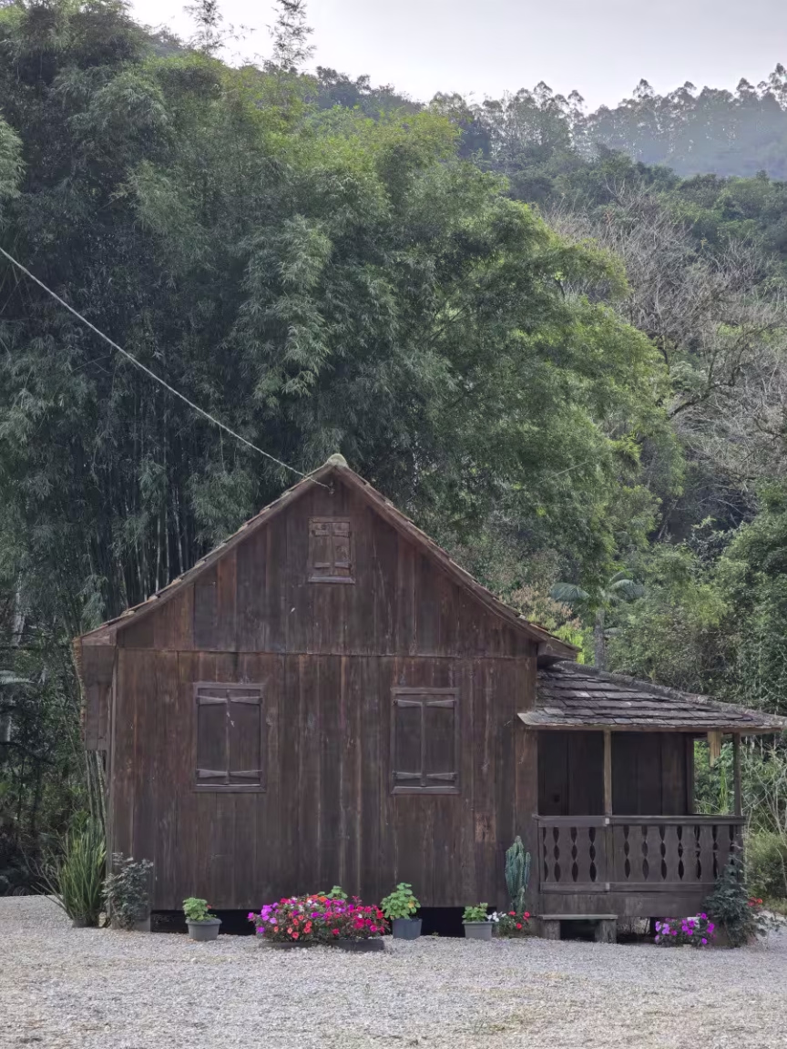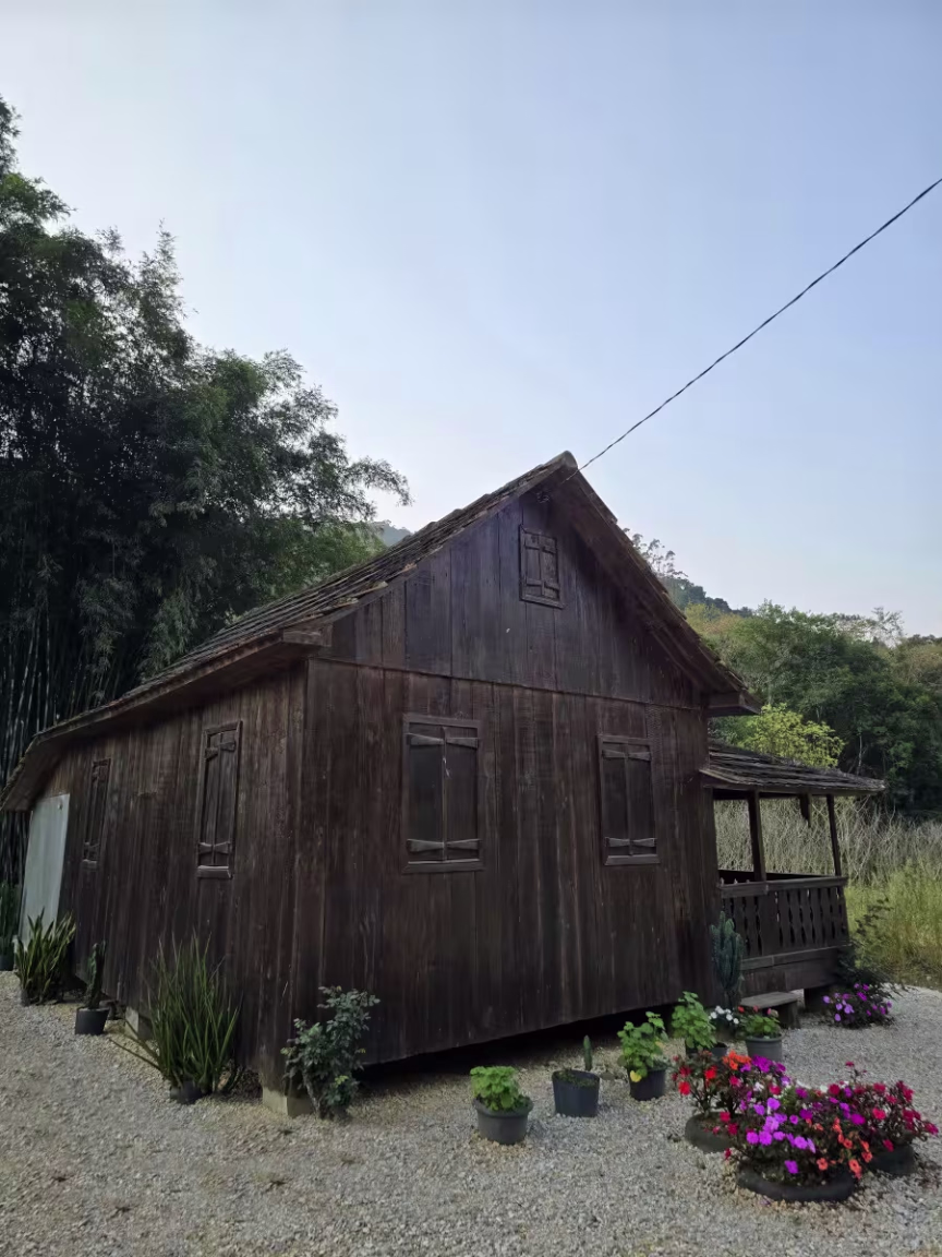 Animais como patos e galinhas circulam livremente pela propriedade, conferindo ainda mais autenticidade a esse ambiente rural, onde a simplicidade e a paz reinam soberanas.