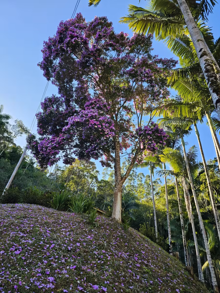Em seguida, outros locais em Brusque serão mostrados, que também estão enfeitados por essas flores lilás e brancas, tanto em jardins quanto nas ruas da cidade. Confira as imagens a seguir.