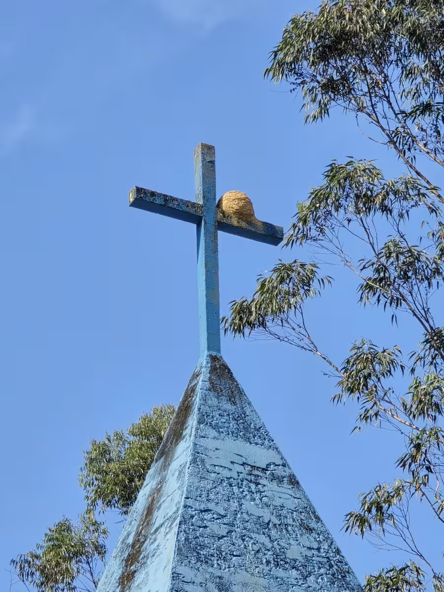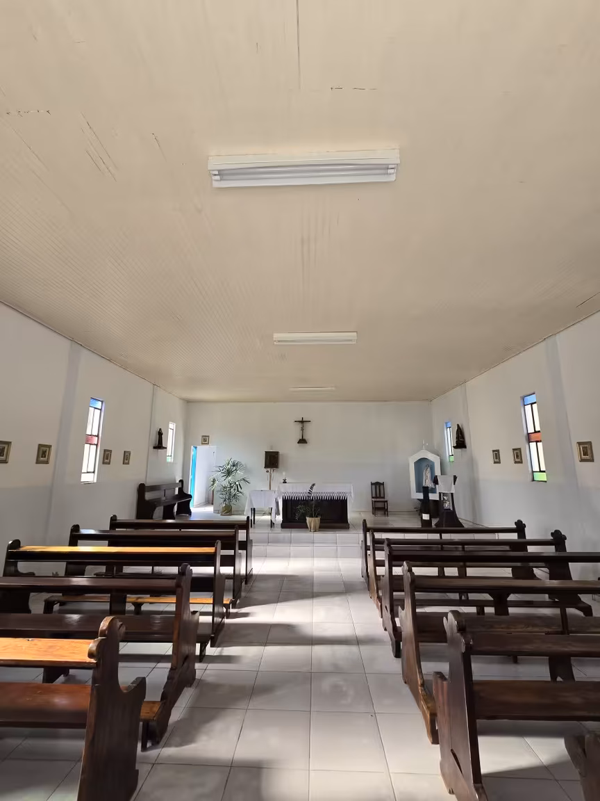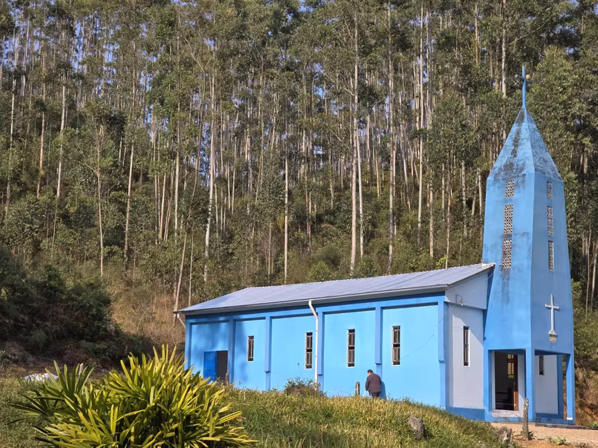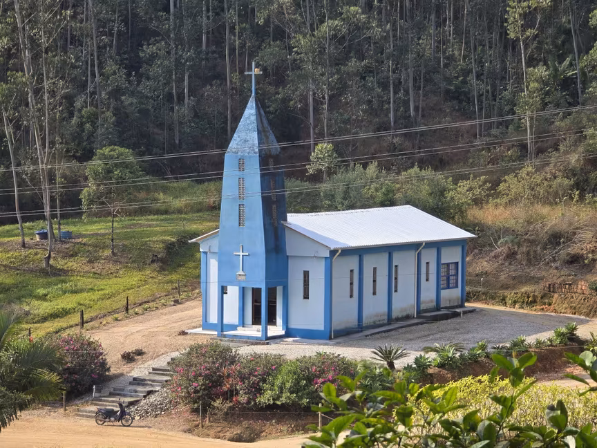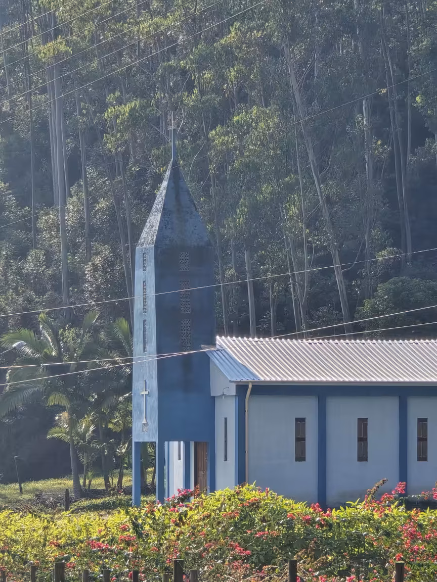 Com seu charme rústico, este templo de oração poderia então facilmente figurar em novelas típicas do interior brasileiro.