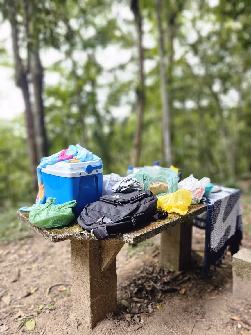 À sombra das árvores majestosas, grupos se reúnem em torno da beleza natural do local, transformando o espaço esquecido em palco de encontros calorosos e piqueniques animados.